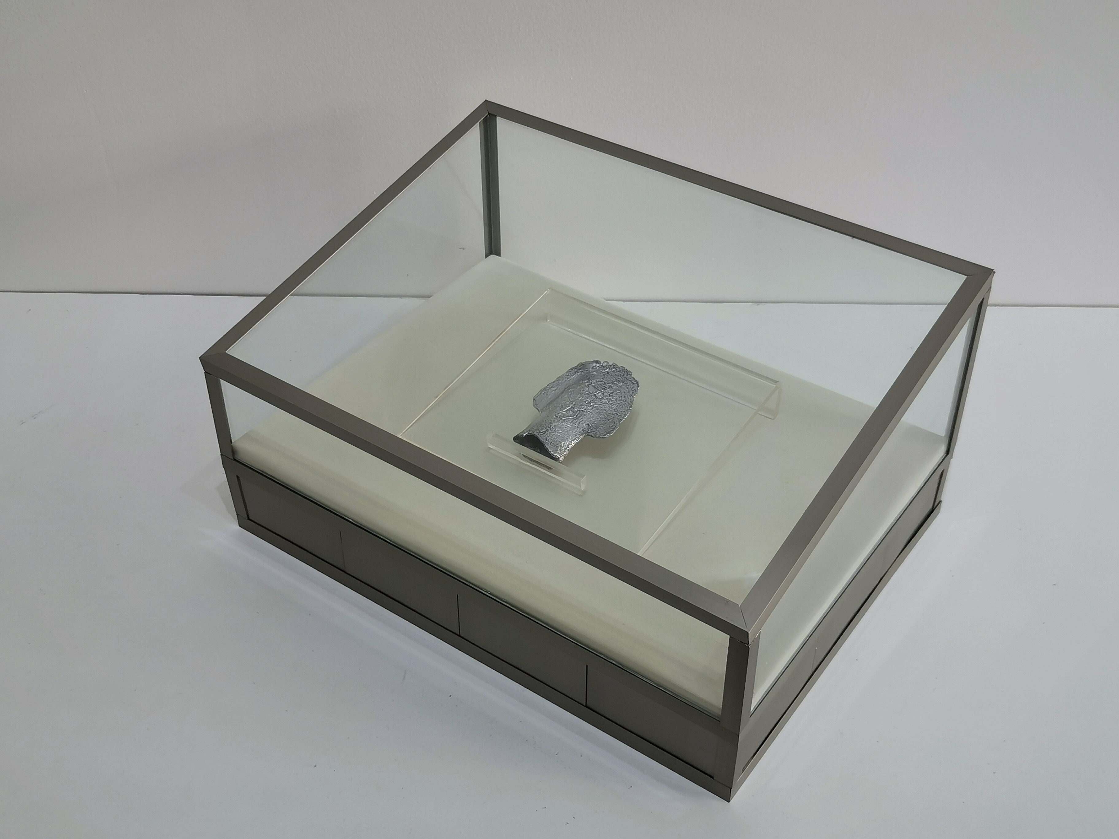 Aluminium from bomb ramnants , anodized aluminium, glass , acrylic and frabric.