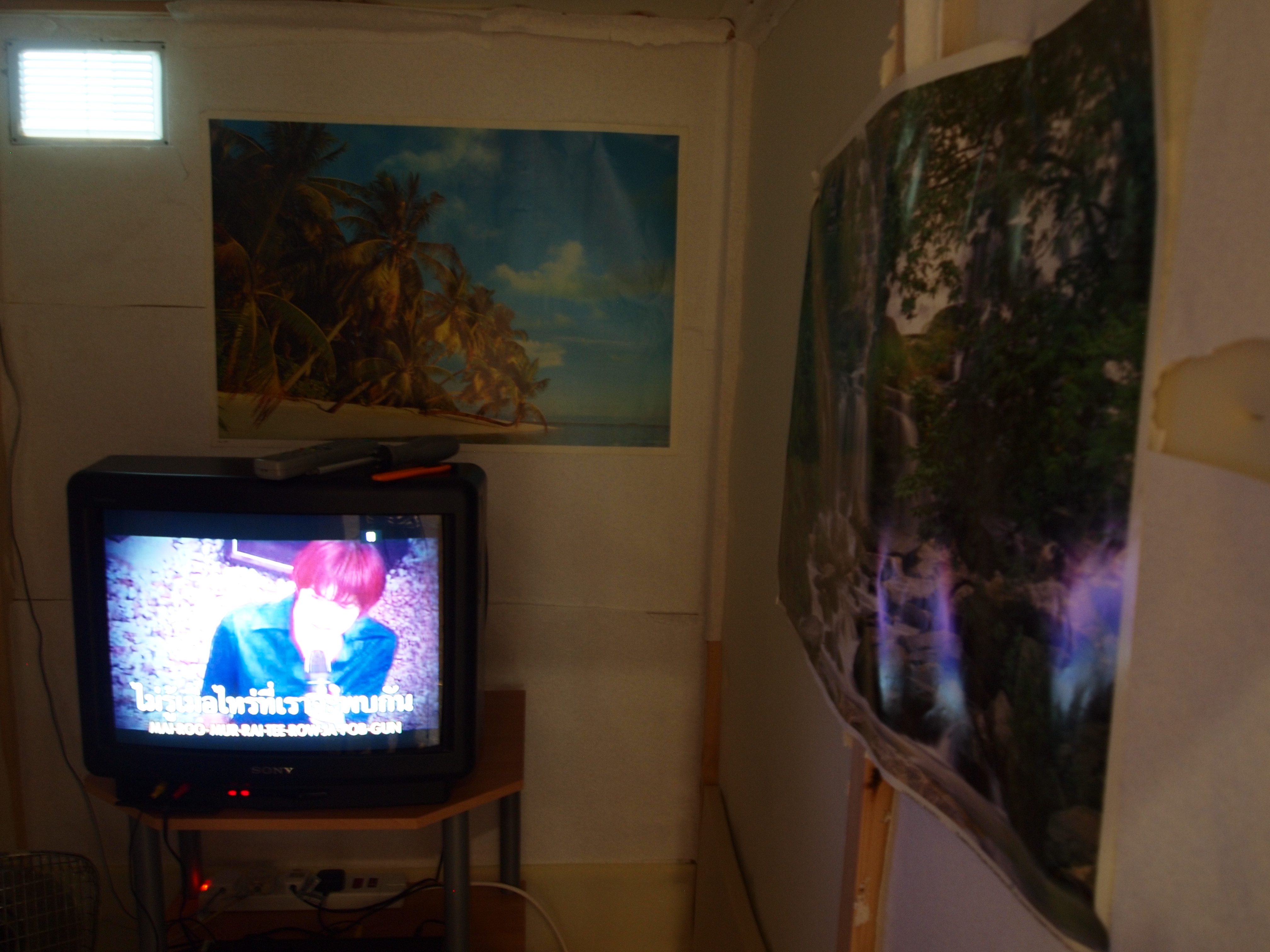 In other word the work touch up on the sense of culture,exotic culture,namely Thai culture being exploited as commodity. Also in itself the work is a space of non-place where this karaoke box could exist only in Thai old department store,dodgy beach bar,shady suburb restaurant and local pub.